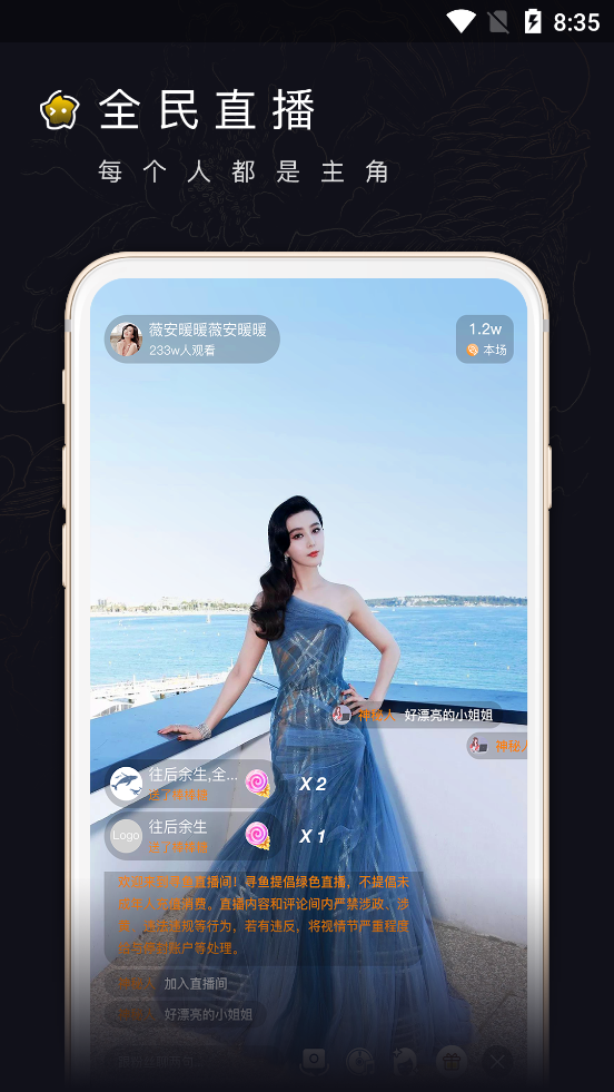 寻鱼直播是一款集视频直播、线上商城于一体的一款娱乐休闲软件,你可以在寻鱼直播发布短视频随时随地记录生活的美好瞬间,也可以成为众多红人主播中的一员,享受平台带来的完善打赏功能,闲暇时也可以在商城购物或者预约的美容、酒吧等娱乐活动。寻鱼直播将给您带来舒适的生活娱乐体验。
