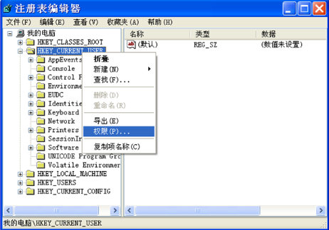 3、右键点击 HKEY_CURRENT_USER 选项→权限。