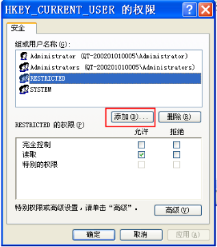 4、在弹出权限设置对话窗之后,单击 添加 按钮。