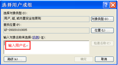 5、弹出的选择用户和组对话框中输入当前的账户用户名,如果不太清楚,可以点击高级。