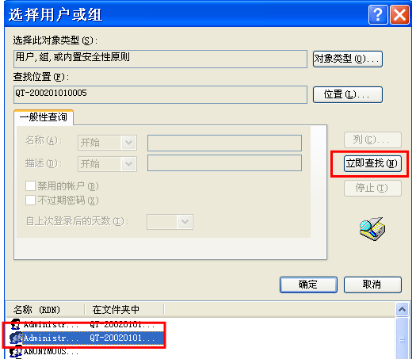 6、再点击 立即查找 点选当前的账户→确定→确定,给予权限。