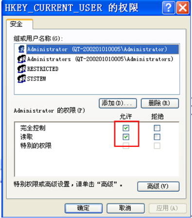 8、设置好当前账户的权限后,再赋予SYSTEM账户以同样的 完全控制 的权限(方法同上)。