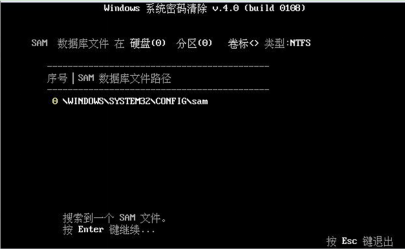 2、选择清除windows密码,确定后出现如下界面,选择系统所在分区“1”,当然你不知道的情况下亦可使用搜索并按回车。