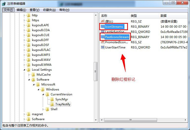 3、在右侧窗口中,将“IconStreams和PastIconsStream”删除掉,然后保存退出。