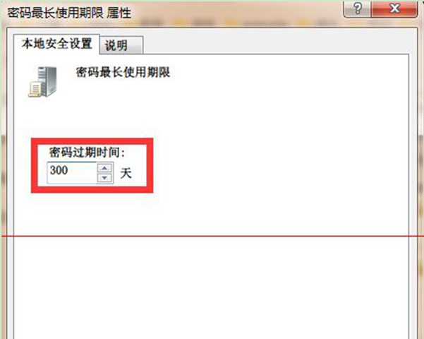 4、在弹出窗口中修改密码过期时间为300天,点击应用——确定保存。