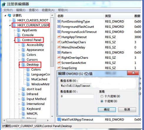 2、在注册表编辑器依次展开到“HKEY_CURRENT_USER\Control Panel\Desktop”,