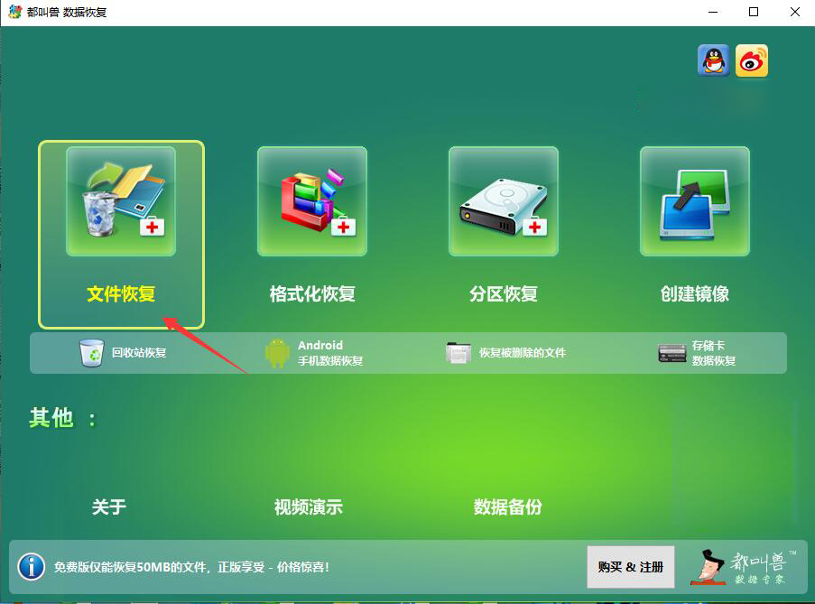 温馨提示:都叫兽数据恢复软件免费版仅能恢复50MB的文件,需要恢复50MB以上的文件需购买激活码以后才能完成最终恢复。