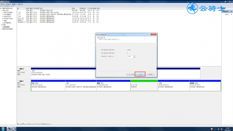 出现新建简单卷向导,点击下一步,在简单卷大小中输入想要的大小