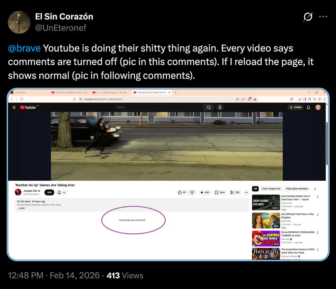IT之家 2 月 20 日消息,据科技媒体 Android Authority 报道,谷歌近期似乎为 YouTube 加强了广告拦截器的反制措施,导致部分用户无法查看评论区与视频简介。 根据 X 平台、Reddit 论坛大量用